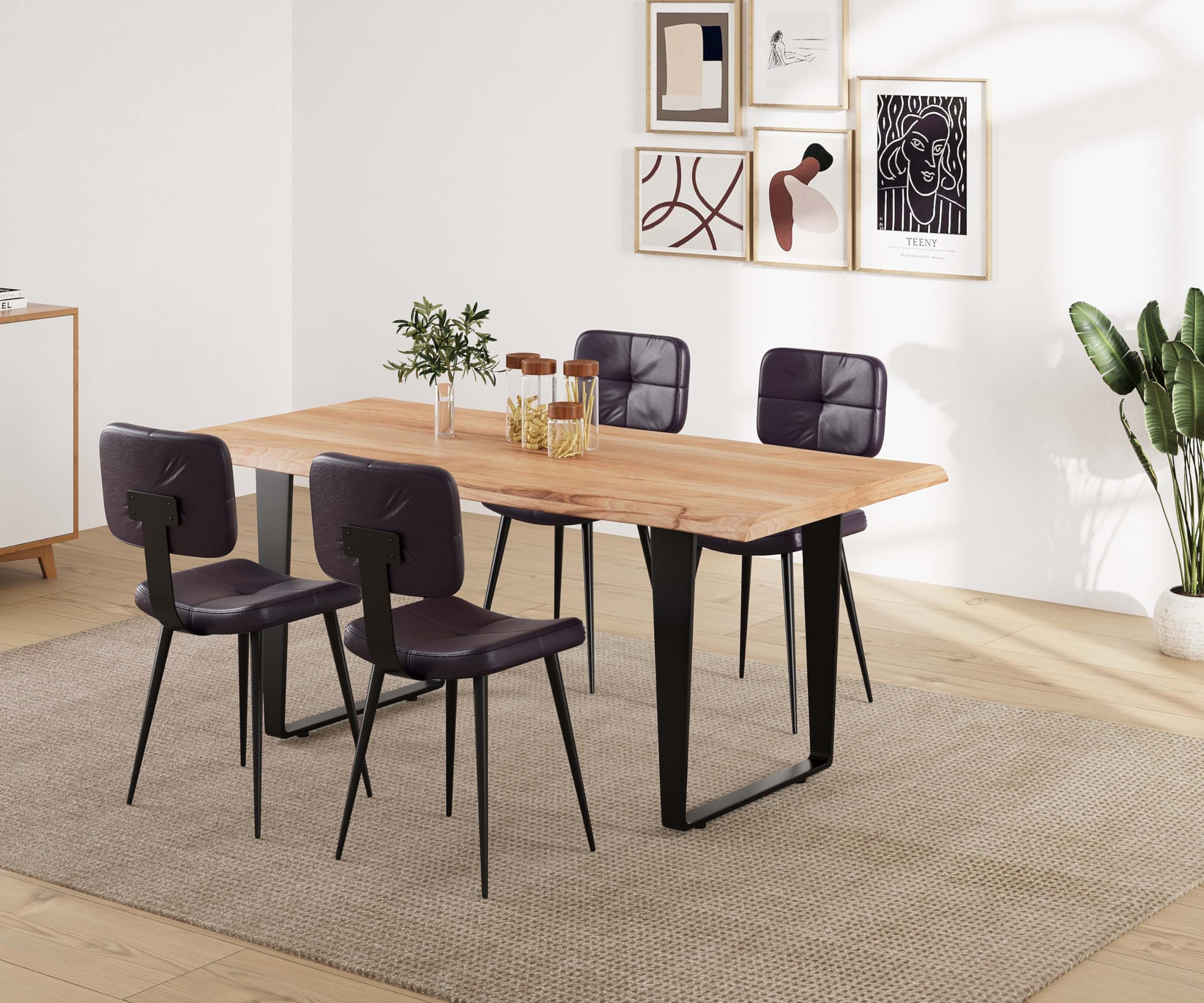 The Attic Chicago Four Seater Dining Set Natural Small Solid Acacia Wood Live Edge Table Finish Natural Amazon In Toys Games
